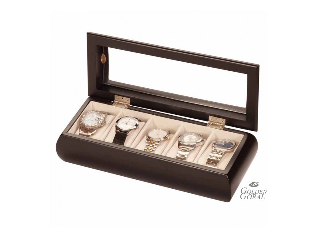 Pánsky box na hodinky s presklennou vrchnou časťou, vyrobený z dreva.