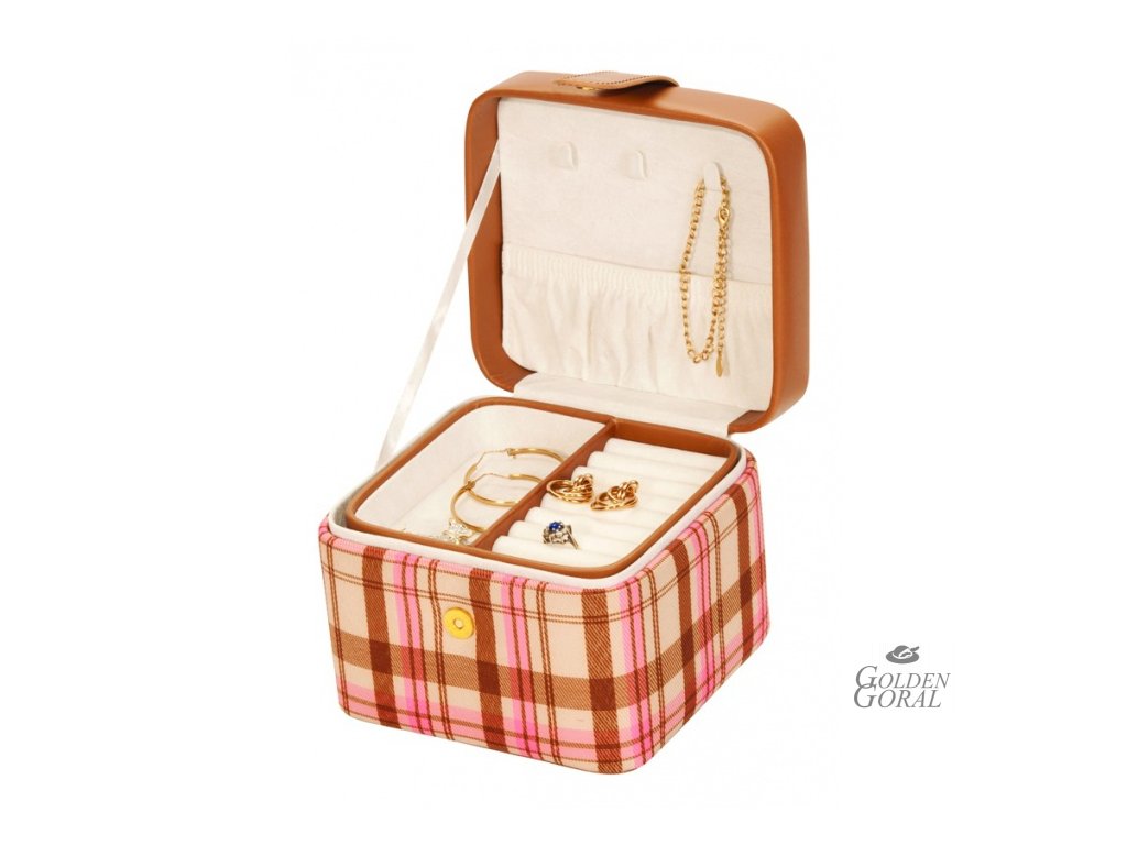 Šperkovnica Jada s povrchovou úpravou z textilu a ekokože. Šperkovnica má vyťahovaciu zásuvku s priehradkami na prstene a náušnice. Vhodná aj ako cestovná šperkovnica.