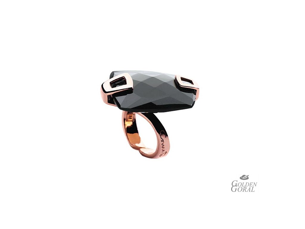 Comete prsteň vyrobený z bronzu pozlátený ružovým zlatom s onyxom. Variabilná veľkosť.