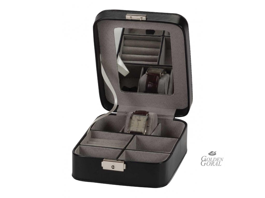 Elegantný pánsky organizér vyrobený z ekokože v jednoduchom prevedení. Vo vnútri sa nachádzajú priehradky a zrkadlo vo veku. Vhodný na hodinky, šperky, manžetové gombíky a pod.