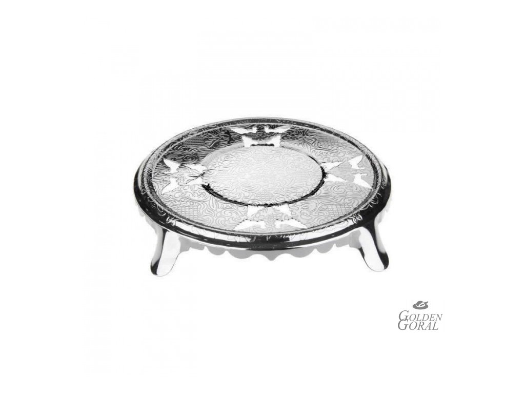 Podstavec pod čajník s jemným vzorom, vyrobené z postriebrenej alpaky Queen Anne. Výrobok je polakovaný odolný voči oxidácii. Čistiť len vlhkou jemnou handričkou a vodou.