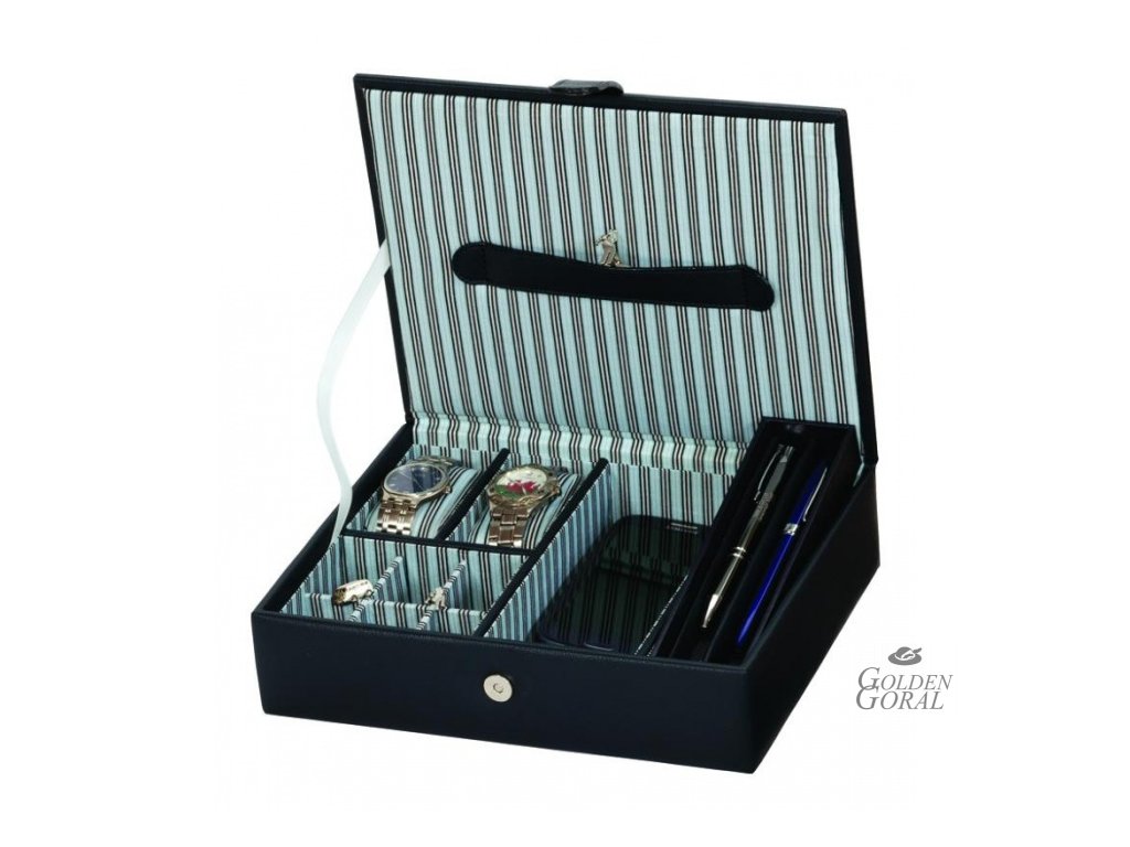 Pánsky organizér vyrobený z ekokože, modrej farby. Vhodný na bezpečné odloženie hodiniek, manžetových gombíkov a pod.