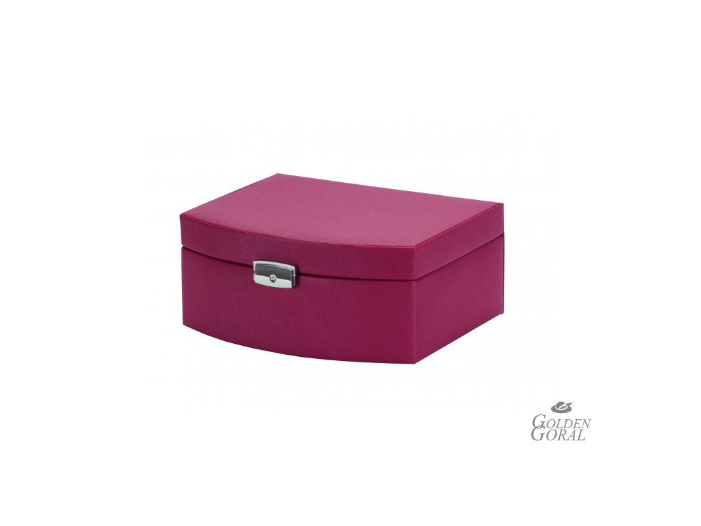 Elegantná šperkovnica vyrobená z ekokože cyklaménovej farby. Šperkovnica má vyťahovaciu zásuvku s oddeleniami pre lepšiu prehľadnosť. Vo veku šperkovnice sa nachádza zrkadlo.