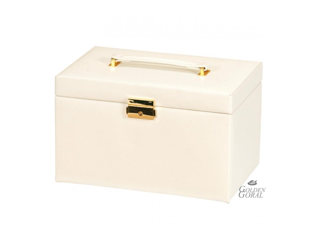 Elegantná šperkovnica bielej farby vyrobená z ekokože. Šperkovnica je priestranná, má množstvo úložného priestoru, cestovné púzdro, je uzamykateľná.