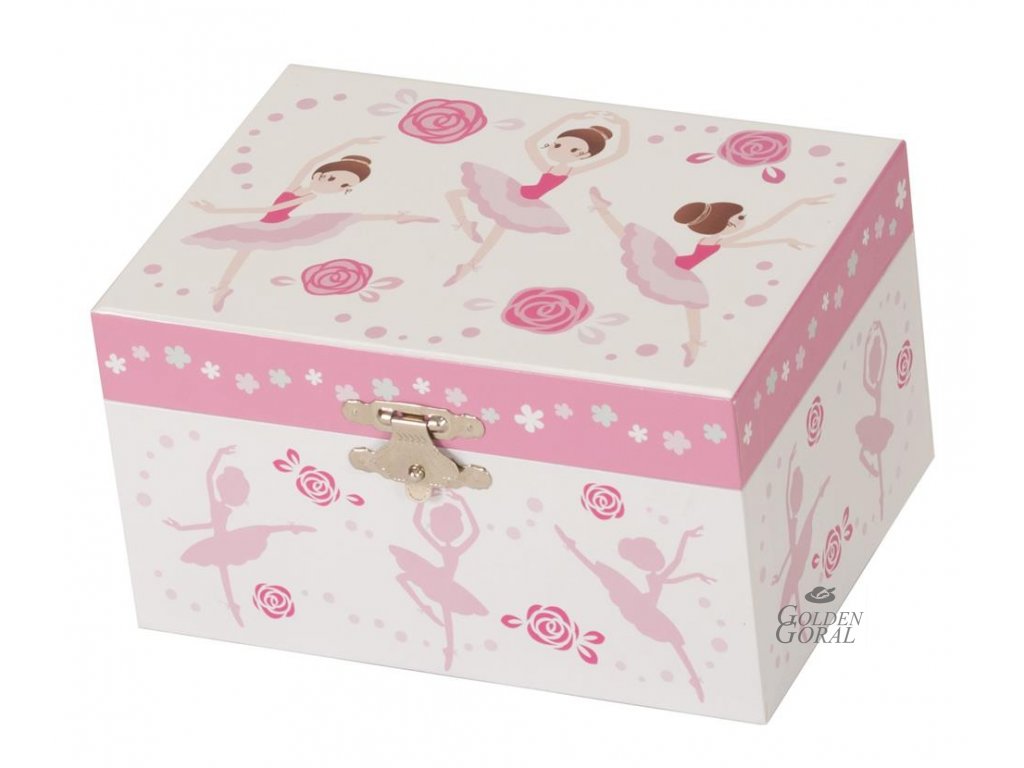 Detská hracia šperkovnica s tancujúcou baletkou. Vo vnútri sa nachádza malé zrkadielko, po otvorení veka sa točí baletka a hrá príjemná hudba. Naozaj milý darček pre malú slečnu.