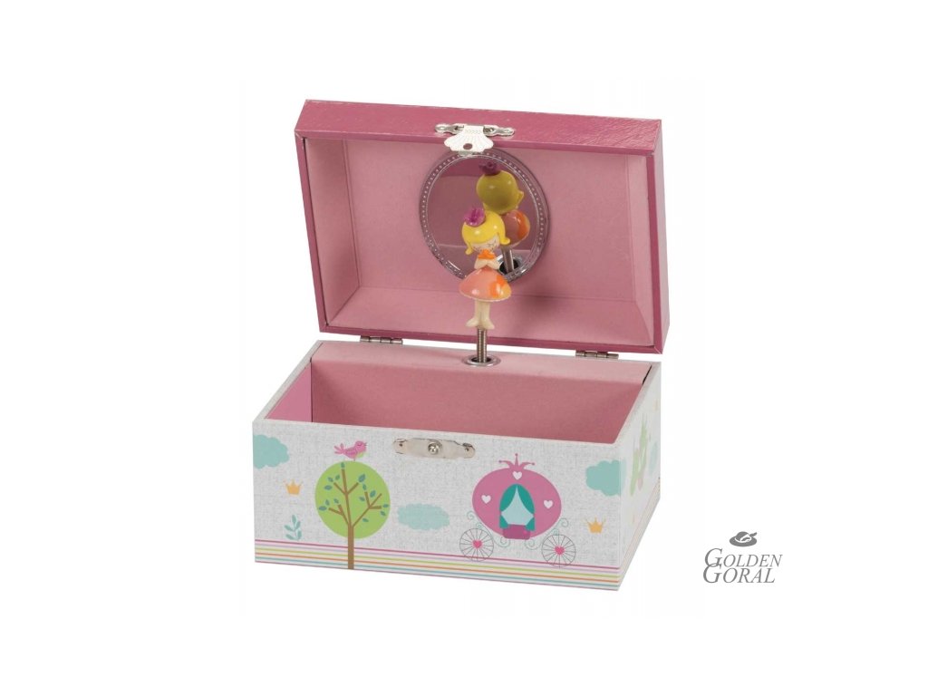 Detská hracia šperkovnica s tancujúcou princeznou. Šperkovnica má zrkadielko vo veku a priestor na prstienky a drobnosti. Šperkovnica je darček, ktorý poteší každú malú slečnu - parádnicu.