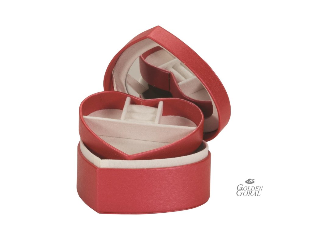 Šperkovnica BIANCA značky Mele & Co je červenej farby v tvare srdca. Vo vnútri sa nachádza zrkadlo a priehradky na uloženie šperkov. Vnútro je vystlané béžovým zamatom. Vhodné aj ako darček, ktorý poteší každú dámu alebo slečnu.