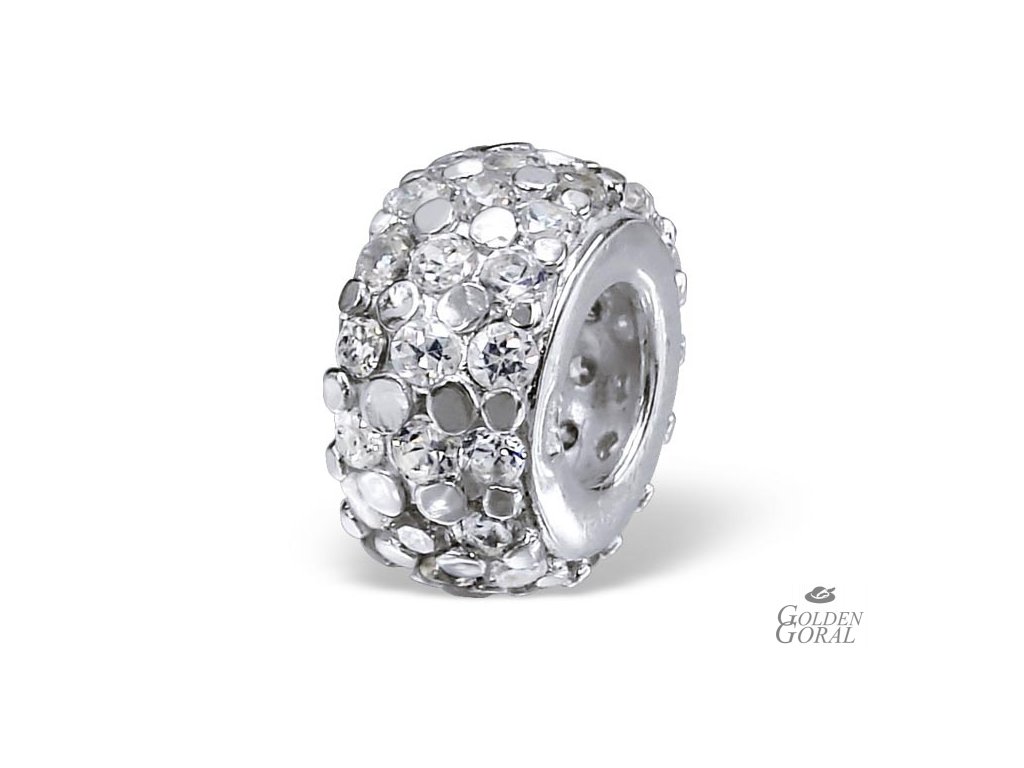 Strieborný prívesok - korálka s kamienkami po obvode. Prívesok je vhodný na náramok.