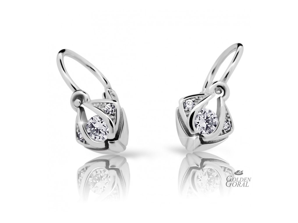 Zlaté náušničky moderného tvaru z bieleho zlata o rýdzosti 585/1000 - 14 karátov s kvalitnými zirkónmi sú dokonalou ozdobou každej malej slečny. Do najmenšieho detailu prepracované šperky vyrobené skúsenými zlatníkmi v Českej republike sú dodávané v originálnej darčekovej krabičke. Vďaka bezpečnému zapínaniu skvelo držia v drobných uškách dievčatiek - bábätiek. Krédo náušničiek CUTIE je "každá slečna si zaslúži byť princeznou"